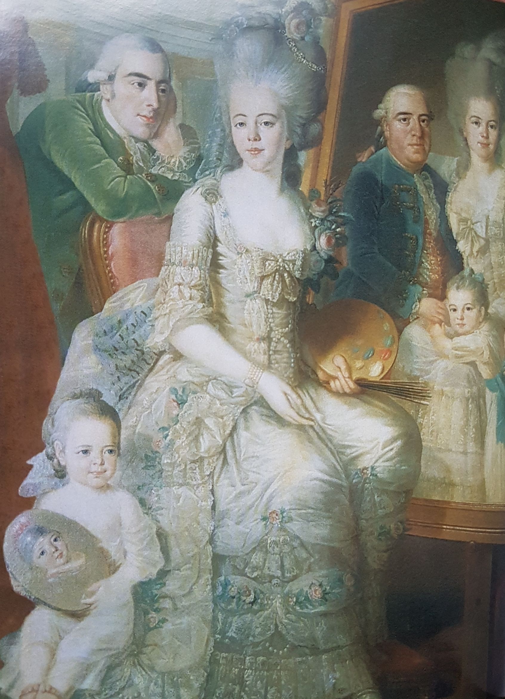 Tableau représentant la famille des Feugerets vers 1780 : Emery des Feugerets, son épouse Geneviève Madeleine Poullain de Brustel, leur fille Virginie et, en médaillon, leur fils Alexandre, coiffé du casque militaire, surmonté d'un cimier. Alexandre des Feugerets était scolarisé au Collège Royal Militaire de Thiron de Thiron Gardais. Il y est décédé à l'âge de 10 ans.